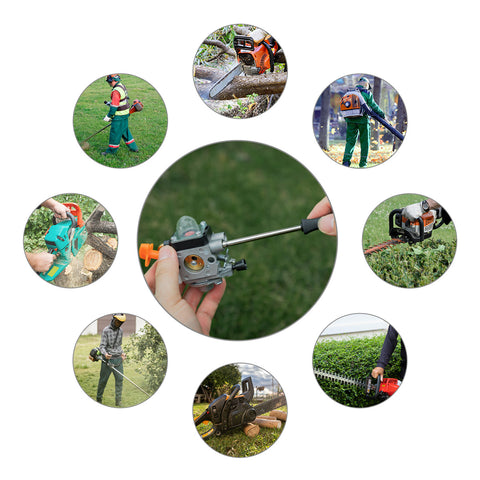 | · Convient aux coupe-bordures, tronçonneuses, souffleurs de feuilles, taille-haies, coupe-bordures, élagueurs à perche et autres petites machines à moteur 2 temps qui utilisent l'outil de réglage du carburateur. |